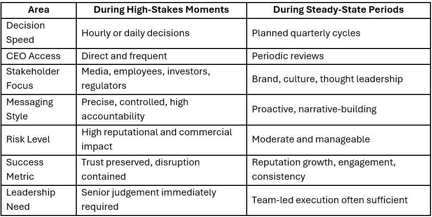 In calm periods, communications can feel functional. In defining moments, it becomes strategic infrastructure.